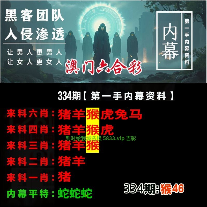 | 334期⑧肖 | 羊猪狗猴虎鼠牛鸡 | 開猴46准 |